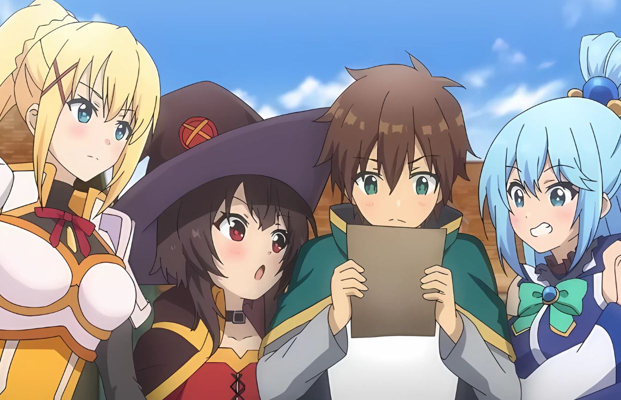 KonoSuba é um dos grandes títulos dos animes Isekai de comédia e fantasia, contando com três temporadas, todas disponíveis para assistir na Crunchyroll.
